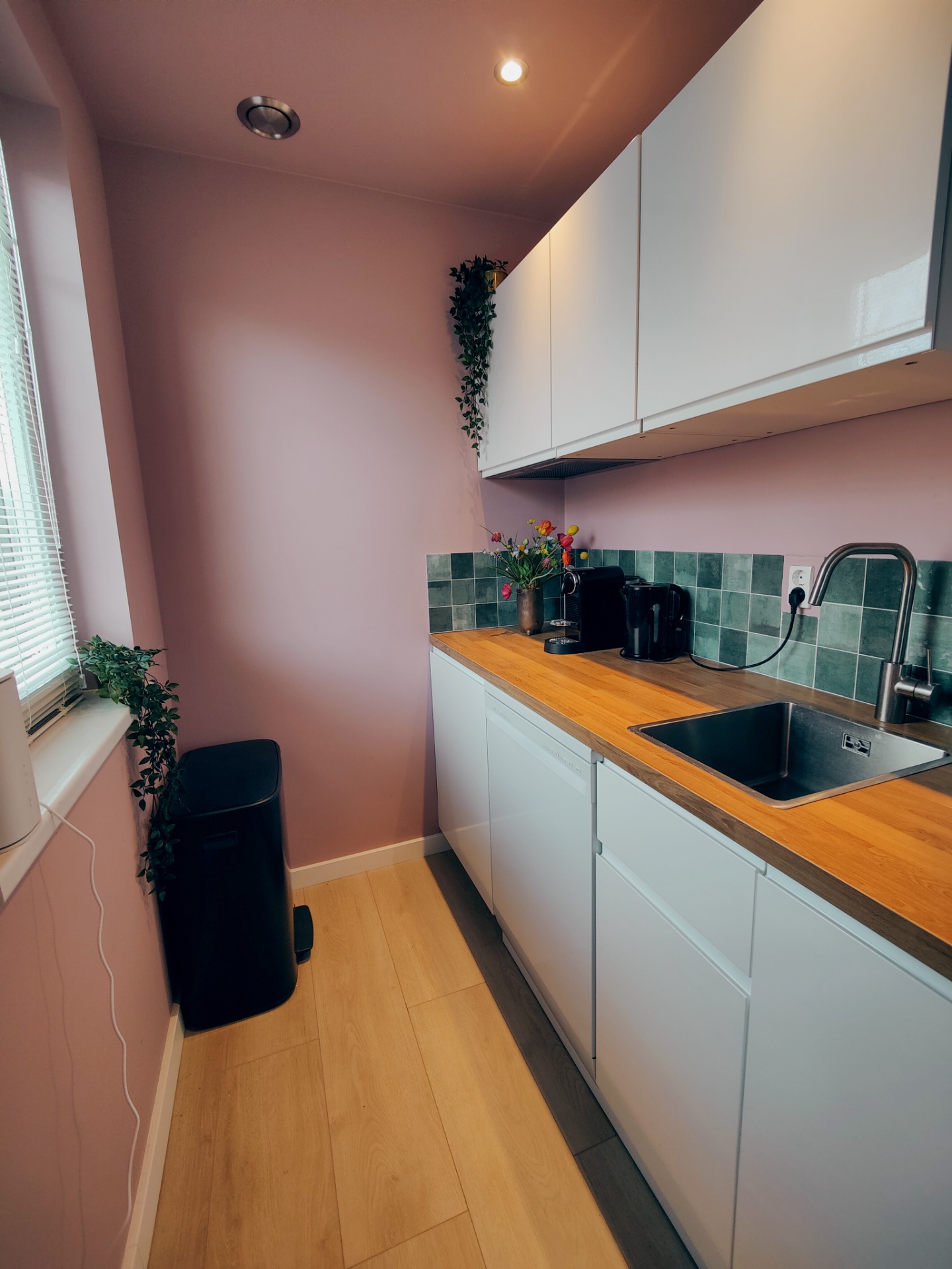 In deze gezellige keukenpantry met warm houten aanrechtblad en lichte kleuren vind je alles voor het maken van een smakelijk ontbijt of een lekkere snack. Van alle gemakken voorzien om van een ontspannen verblijf te genieten.